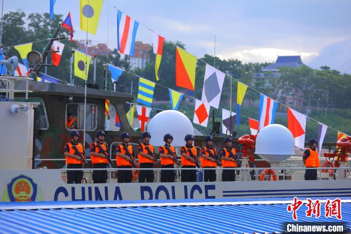 8月22日9時,第132次中老緬泰湄公河聯合巡邏執法行動正式啟動。圖為(wei) 聯合巡邏執法編隊從(cong) 中國西雙版納景哈警務碼頭啟航。 (雲(yun) 南省公安廳 供圖)