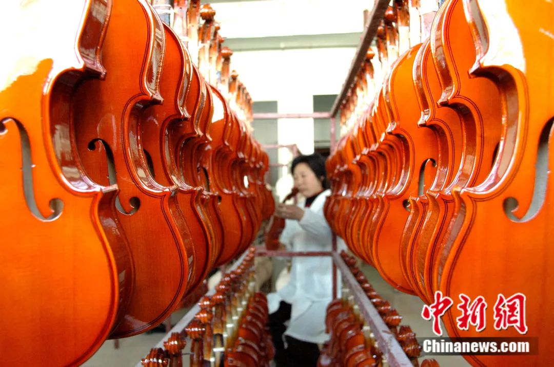 如今,黃橋鎮發展成為(wei) 擁有200多家樂(le) 器加工企業(ye) ,產(chan) 值超過24億(yi) 元的樂(le) 器生產(chan) 基地。黃橋鎮遍布230餘(yu) 家製琴相關(guan) 企業(ye) ,在20多萬(wan) 人口中,3萬(wan) 多人從(cong) 事製琴行業(ye) 。