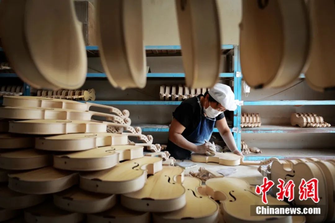 “我們(men) 的小提琴共有197道製作工序,從(cong) 選料到雕刻,從(cong) 修光到油漆,每一道都要進行嚴(yan) 格的把控。小提琴的製作過程,就像是在雕刻工藝品一樣。每個(ge) 環節相輔相成,缺一不可。”江蘇鳳靈樂(le) 器有限公司生產(chan) 副總經理張文舉(ju) 說。