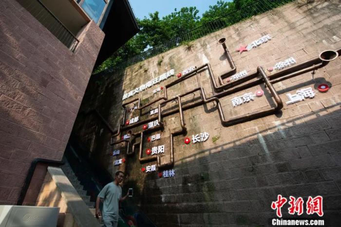 重慶故宮文物南遷紀念館內(nei) 一處外牆展示的故宮文物南遷路線。何蓬磊 攝