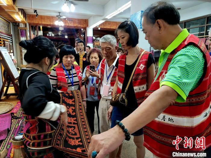 台北市商業(ye) 總會(hui) 一行在海南檳榔穀景區觀看黎錦作品。 王曉斌 攝