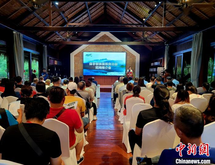 保亭縣向來訪台灣同胞介紹當地開發投資項目。 王曉斌 攝