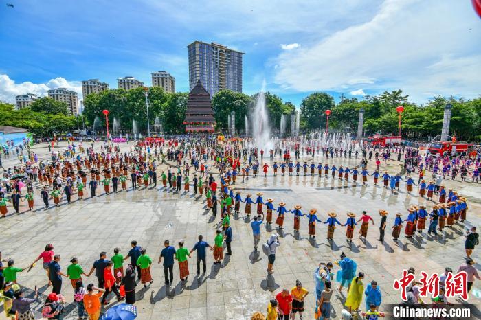 嬉水節活動現場,台灣同胞與(yu) 當地民眾(zhong) 一道載歌載舞歡度“七夕”。 駱雲(yun) 飛 攝
