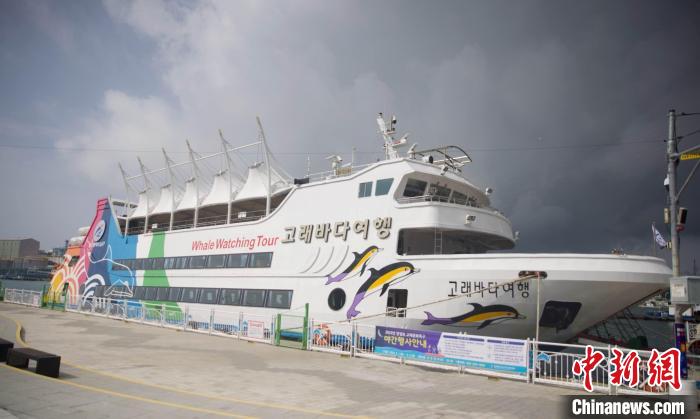 圖為(wei) 蔚山觀鯨旅遊線路中的出海觀鯨旅行船。 中新社發 王悅 攝