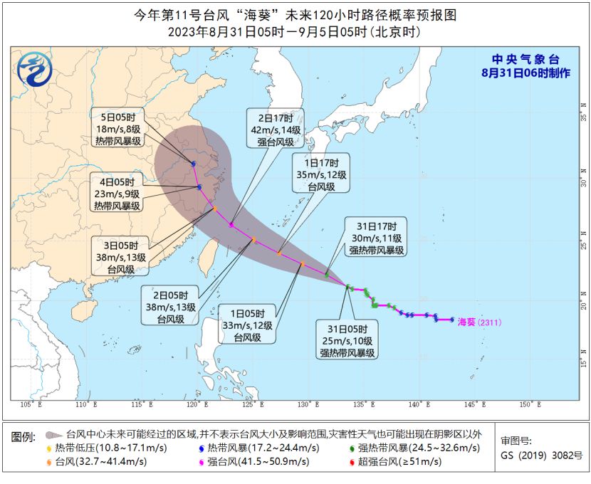 中央氣象台8月31日06時發布台風紅色預警: