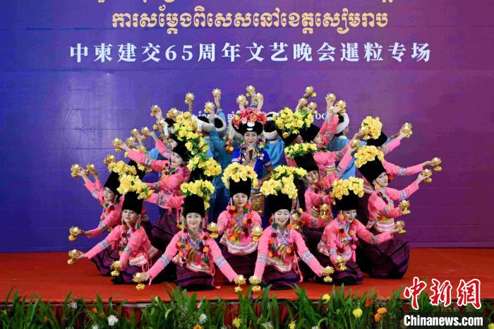 當晚在暹粒省專(zhuan) 場演出的中柬建交65周年文藝晚會(hui) 在中柬舞蹈《團結花開中柬情》拉開序幕。整場文藝晚會(hui) “以水為(wei) 緣”分成“共飲一江水”“共築一家親(qin) ”“共享一路行”三個(ge) 篇章。來自中國雲(yun) 南與(yu) 柬埔寨的藝術家通過舞蹈、歌唱、音樂(le) 演奏等多種形式,為(wei) 現場觀眾(zhong) 奉獻了一場具有“中華傳(chuan) 統文化韻味、雲(yun) 南民族特色風情、中柬文化藝術交融”特色的文化饕餮盛宴。