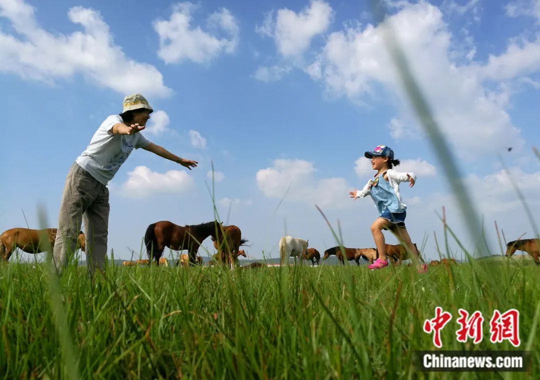 2016年8月,祖孫倆(lia) 在塞罕壩機械林場內(nei) 玩耍。在半個(ge) 多世紀的時間裏,塞罕壩人將昔日飛鳥不棲、黃沙遮天的荒原,變成百萬(wan) 畝(mu) 人工林海。楊可佳 攝