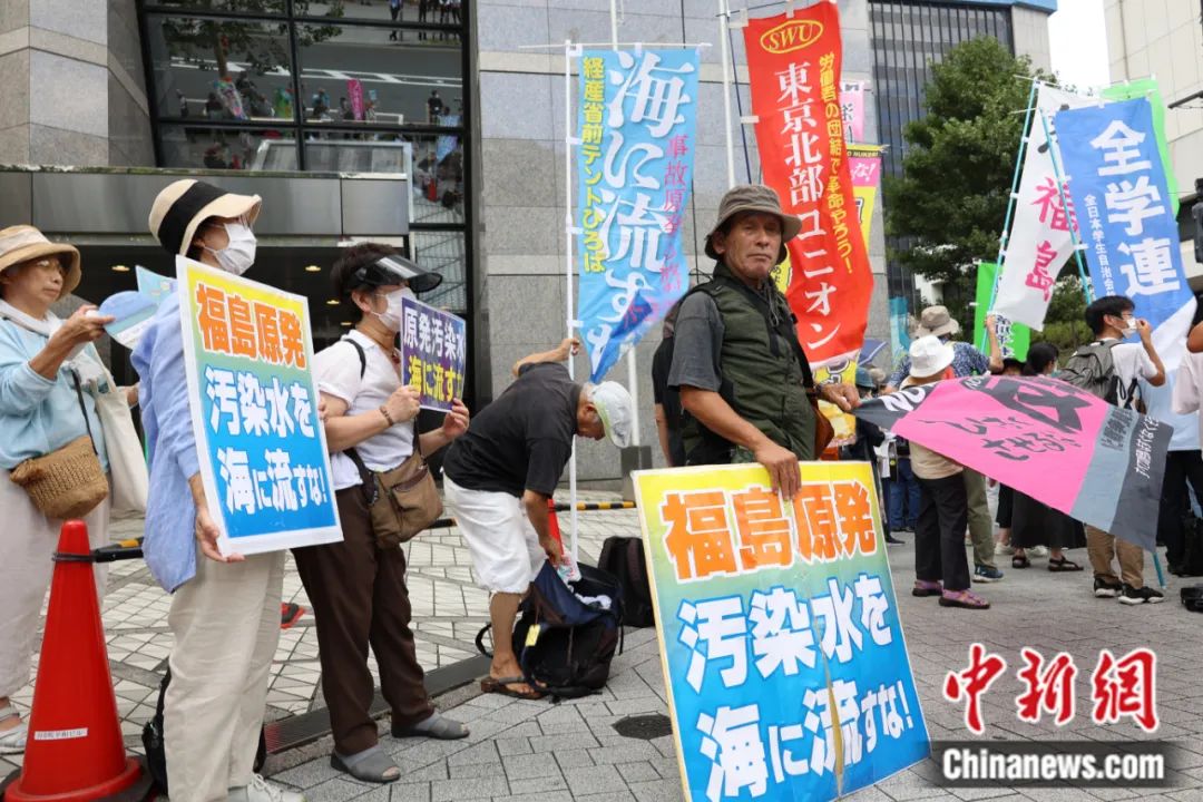 2023年8月24日,日本民眾(zhong) 在位於(yu) 東(dong) 京千代田區的東(dong) 京電力公司總部附近舉(ju) 行集會(hui) ,強烈反對日本政府當天啟動福島核汙染水排海作業(ye) 。朱晨曦 攝