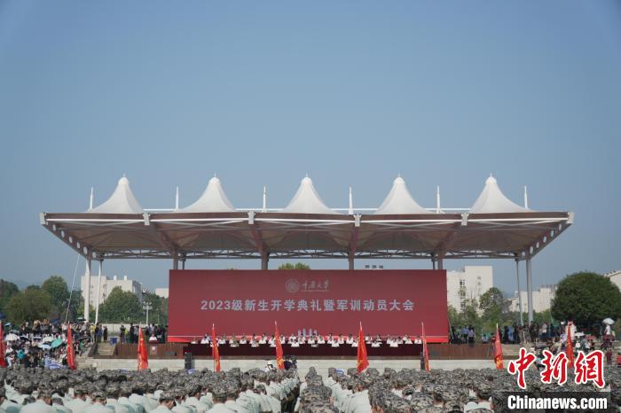 圖為(wei) 重慶大學2023級本科生開學典禮暨軍(jun) 訓動員大會(hui) 現場。中新網記者周毅攝