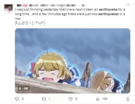 有網友在社交媒體(ti) 上表示,“昨天還在想(日本)很久沒發生地震了,幾分鍾前卻連續發生了兩(liang) 次地震。”
