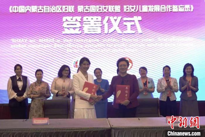 圖為(wei) 《中蒙婦女兒(er) 童合作備忘錄》簽署儀(yi) 式 。(崔博群攝)