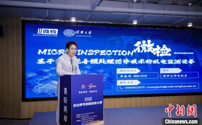 9月6日,“青聽兩(liang) 岸 創響京台”2023京台青年創新創業(ye) 大賽總決(jue) 賽在北京舉(ju) 辦。圖為(wei) 參賽選手進行項目展示。(主辦方供圖)