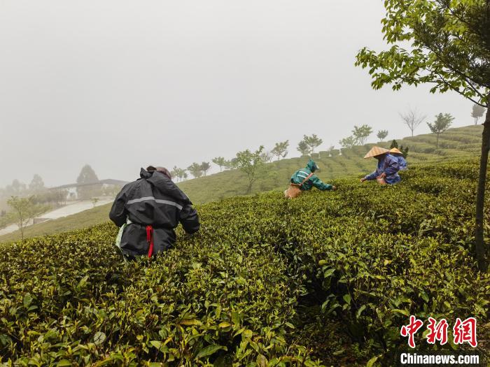 3月24日,福建福鼎的茶園裏,工人們(men) 正在采摘茶葉。 陳祖貝 攝