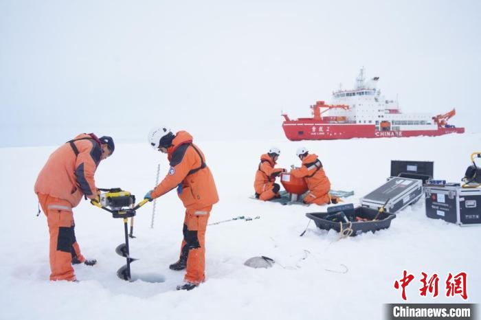 近日,中國第13次北冰洋科學考察隊在北極點附近開展海冰綜合作業(ye) 。(自然資源部供圖)