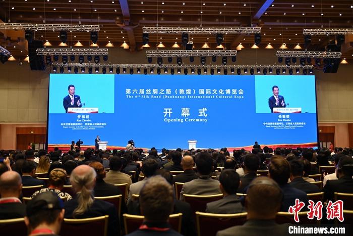中新社敦煌9月6日電(記者 丁思 李亞(ya) 龍)以“溝通世界:文化交流與(yu) 文明互鑒”為(wei) 主題的第六屆絲(si) 綢之路(敦煌)國際文化博覽會(hui) (以下簡稱“敦煌文博會(hui) ”)6日在古絲(si) 路名城甘肅敦煌開幕。