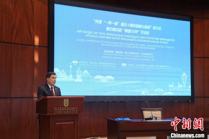 中新網阿斯塔納9月8日電 (記者 張碩 文龍傑)在“一帶一路”倡議提出十周年之際,由哈薩克斯坦中國研究中心及中國主流媒體(ti) 聯合主辦的“共建‘一帶一路’倡議十周年回顧與(yu) 展望”研討會(hui) 暨中國中亞(ya) “黃金30年”交流會(hui) ,7日在哈薩克斯坦納紮爾巴耶夫大學舉(ju) 辦。