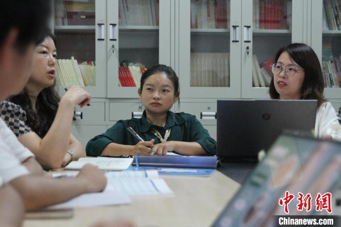 9月7日,在成都紡織高等專(zhuan) 科學校,“輪椅女孩”張曉麗(li) (右二)與(yu) 其無障礙服裝團隊探討。王利文 攝