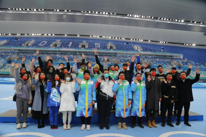 北京大學體(ti) 育教研部台籍教師陳文成組建的台胞誌願者服務隊在北京冬奧會(hui) 上合影。 本人供圖