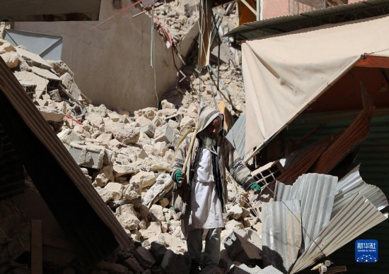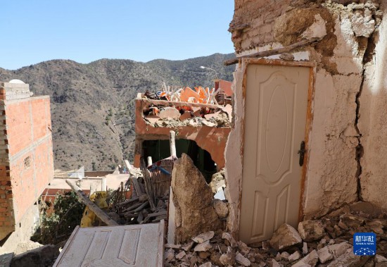 這是9月11日在摩洛哥馬拉喀什南部的穆萊村拍攝的地震損壞的建築。新華社記者王東(dong) 震攝