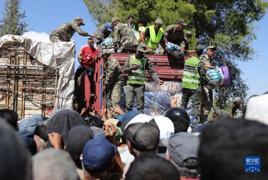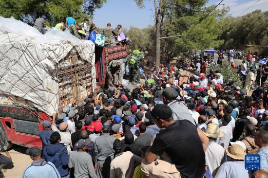 9月11日,救援人員在摩洛哥馬拉喀什南部的艾米茲(zi) 米茲(zi) 村分發救災物資。新華社記者王東(dong) 震攝