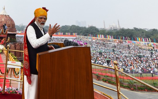 8月15日,印度總理莫迪在德裏出席獨立日慶祝活動時發表講話。新華社發