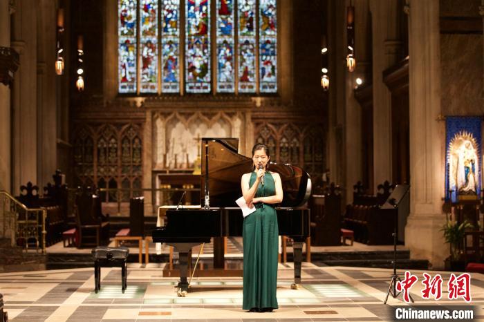 9月上旬,“東(dong) 風”係列三音樂(le) 會(hui) 在倫(lun) 敦舉(ju) 辦,來自不同國家和地區的9位傑出歌唱家分別用中文為(wei) 100多位觀眾(zhong) 獻上了20首詩詞及民族民間藝術歌曲。圖為(wei) 活動主辦者、旅英青年歌唱家錢亦萱主持音樂(le) 會(hui) 。 Lexie Lin 攝