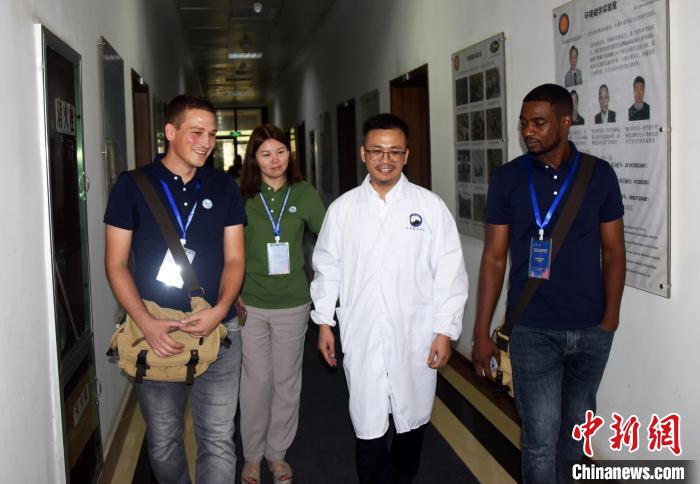 2023“一帶一路”氣候環境變化國際培訓班在西安開班,“班主任”譚亮成研究員(右二)與(yu) 學員交流。中新網記者 孫自法 攝