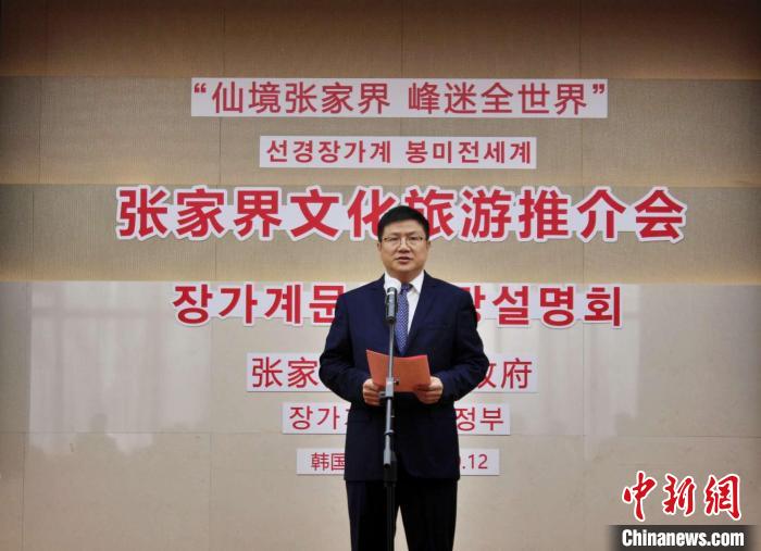 圖為(wei) 張家界市副市長楊洪峰致辭。中國駐首爾旅遊辦事處 供圖
