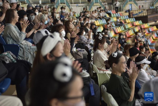 9月14日,觀眾(zhong) 在日本和歌山縣白浜冒險世界遊樂(le) 園參加大熊貓“永明”31歲生日會(hui) 。新華社發(中國駐大阪總領館供圖)