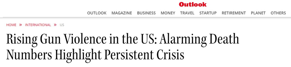 中國日報網9月14日電 印度知名新聞雜誌《瞭望》(Outlook India)網站近日刊文稱,2022年,美國槍支暴力造成的死亡人數高達48117人。多到驚人的涉槍死亡人數突顯出,槍支暴力這一問題在美國造成的持久性危機。在美國,涉槍死亡率甚至是溺水死亡率的5倍多。