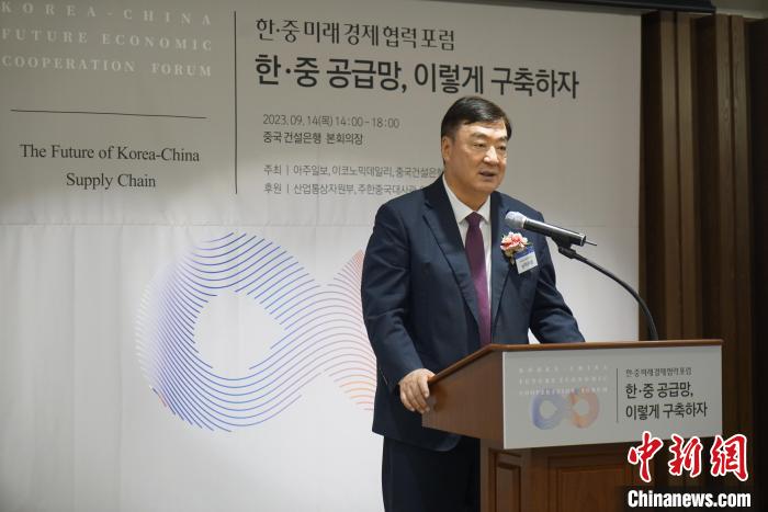 本次論壇以中韓未來供應鏈合作為(wei) 主題,集中探討兩(liang) 國在半導體(ti) 、二次電池、生物醫藥等重點領域的產(chan) 業(ye) 鏈及供應鏈合作。中國駐韓國大使邢海明、公使銜參讚穀金生、韓國國會(hui) 議員梁香子、崔炯鬥等在論壇上發表賀詞。