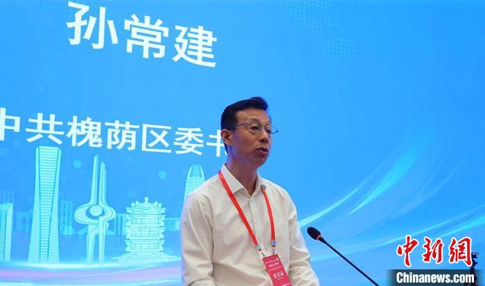 圖為(wei) 槐蔭區委書(shu) 記孫常建在開幕式濟南會(hui) 場上發表致辭。濟南市槐蔭區 供圖