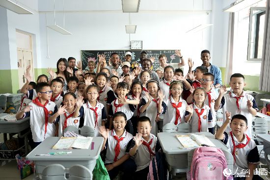 圖為(wei) 選手和午亭小學的學生合影留念。人民網 盧鵬宇攝