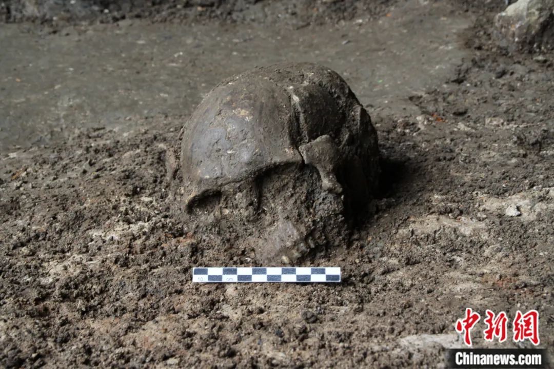 圖為(wei) 2011年奇和洞遺址出土的古人類頭蓋骨。龍岩漳平市融媒體(ti) 中心供圖