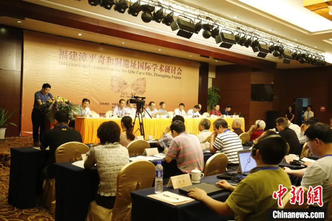 2015年6月15日,福建奇和洞遺址國際學術研討會(hui) 在龍岩漳平市舉(ju) 辦。龍岩漳平市融媒體(ti) 中心供圖