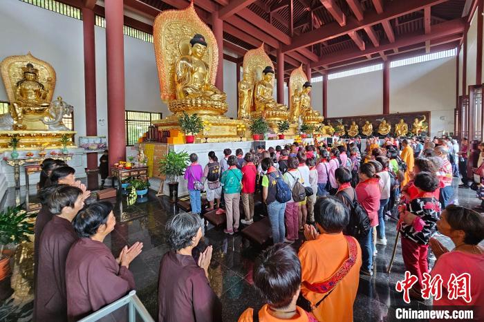 中新網福建南安9月18日電 (孫虹 林應權)台灣新北市三峽區清水祖師信眾(zhong) 會(hui) 一行105人,18日參訪福建南安英都西峰延壽院、翔雲(yun) 龍泉岩、省新部岩功德院等地,共話清水祖師信仰。