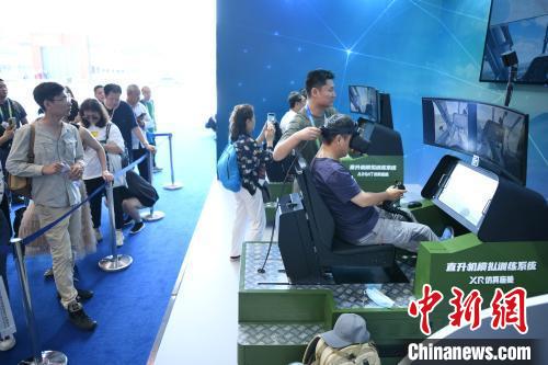 9月14日,與(yu) 會(hui) 者在展位體(ti) 驗直升機模擬訓練係統。當日,第六屆中國天津國際直升機博覽會(hui) 在天津市空港經濟區開幕。為(wei) 期四天的博覽會(hui) 吸引了來自全球20多個(ge) 國家和地區的350餘(yu) 家直升機企業(ye) 齊聚津門。 佟鬱 攝