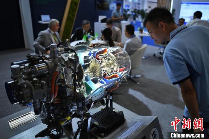 9月14日,與(yu) 會(hui) 者參觀直升機發動機結構展示。當日,第六屆中國天津國際直升機博覽會(hui) 在天津市空港經濟區開幕。為(wei) 期四天的博覽會(hui) 吸引了來自全球20多個(ge) 國家和地區的350餘(yu) 家直升機企業(ye) 齊聚津門。 佟鬱 攝