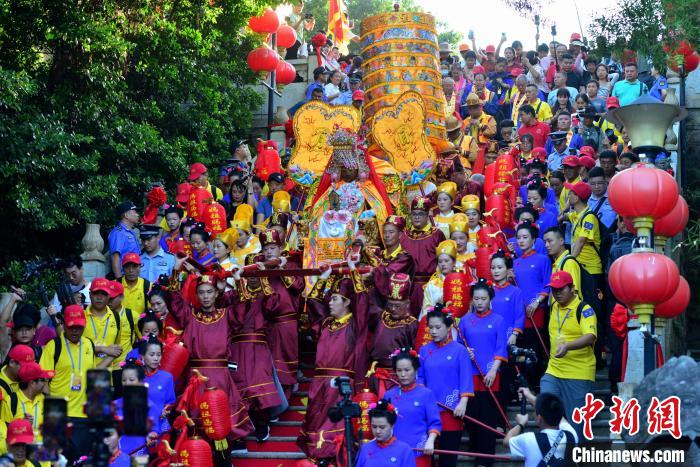 9月19日,湄洲媽祖金身在兩(liang) 岸信眾(zhong) 的簇擁下,開啟十天九夜巡安莆田的布福之旅。中新社記者 張斌 攝
