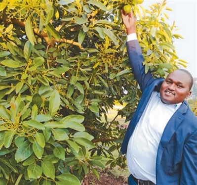 圖為(wei) 烏(wu) 幹達一家果園的負責人展示有機牛油果。