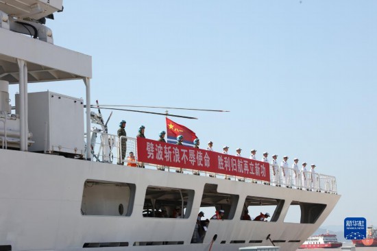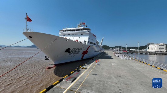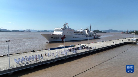 9月19日,執行“和諧使命-2023”任務的海軍(jun) “和平方舟”號醫院船順利返回浙江舟山母港。新華社發(桂江波 攝)
