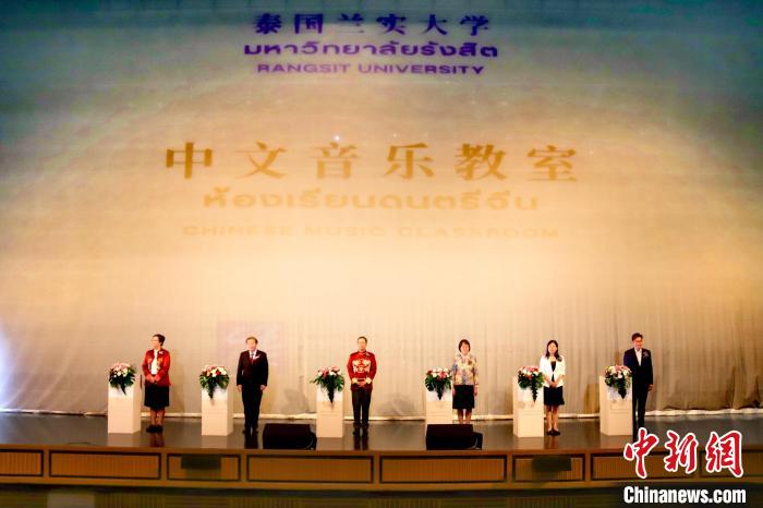 中新網9月21日電(李映民 趙婧楠)泰國蘭(lan) 實大學與(yu) 中外語言交流合作中心合作設立的泰國首家“中文音樂(le) 教室”19日舉(ju) 行揭牌典禮。蘭(lan) 實大學校長阿塔威特·烏(wu) 萊拉、中國駐泰國大使館教育參讚馮(feng) 俊英、蘭(lan) 實大學文學院院長潘心媛等出席活動並致辭。蘭(lan) 實大學管理層、中外語言交流合作中心代表、泰國各孔子學院、多所高校師生代表等750人出席活動。