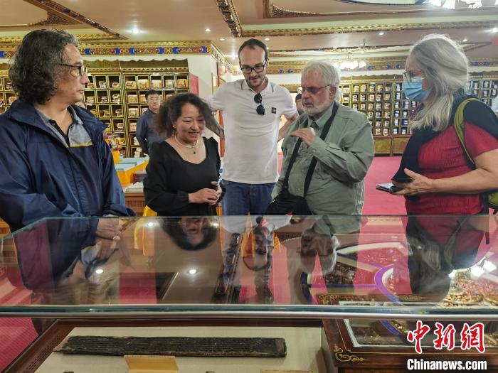 9月20日,外籍專(zhuan) 家記者團參觀西藏大學圖書(shu) 館藏文古籍研究所。中新社記者 趙延 攝