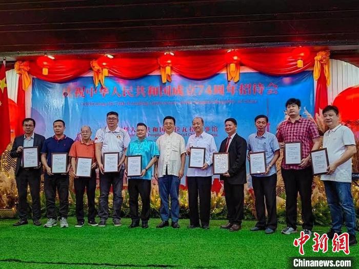 圖為(wei) 招待會(hui) 現場舉(ju) 行領事保護誌願者頒獎儀(yi) 式。中國駐拉瓦格領事館供圖