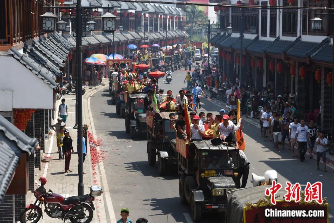 2015年4月3日,海南瓊海市萬(wan) 泉鎮鬧“軍(jun) 坡”車隊在墟鎮上巡遊。蒙鍾德 攝
