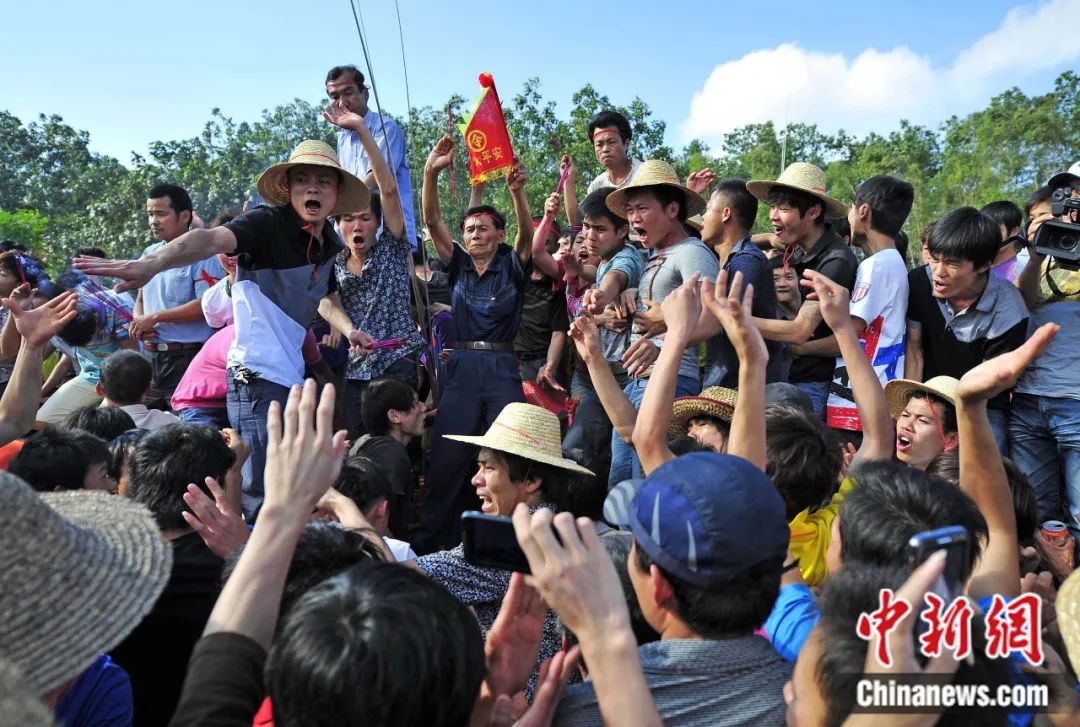 在海南鄉(xiang) 村,每年農(nong) 曆二、三月之間,村鎮將會(hui) 舉(ju) 行熱鬧的“鬧軍(jun) 坡”活動。這是海南人的重大節日之一,起源一般都認為(wei) 是以紀念冼夫人為(wei) 主。駱雲(yun) 飛 攝