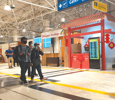 旅客經過埃塞俄比亞(ya) 博萊國際機場內(nei) 的中文服務台。