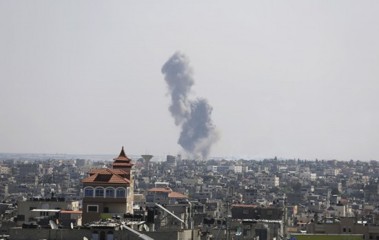 ↑這是10月7日在加沙地帶南部城市拉法拍攝的以色列軍(jun) 隊空襲造成的濃煙。新華社發(哈立德·奧馬爾攝)