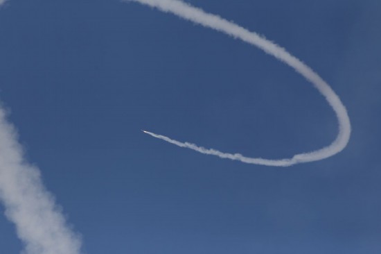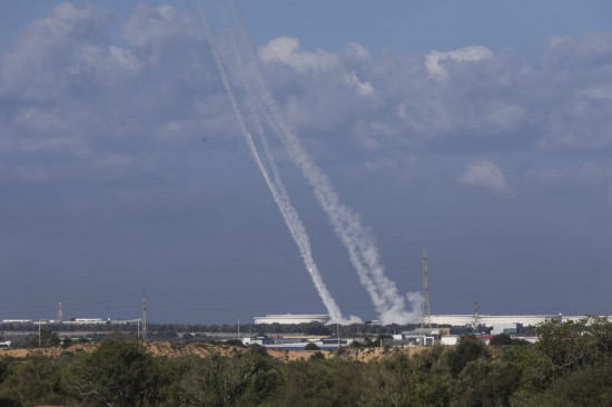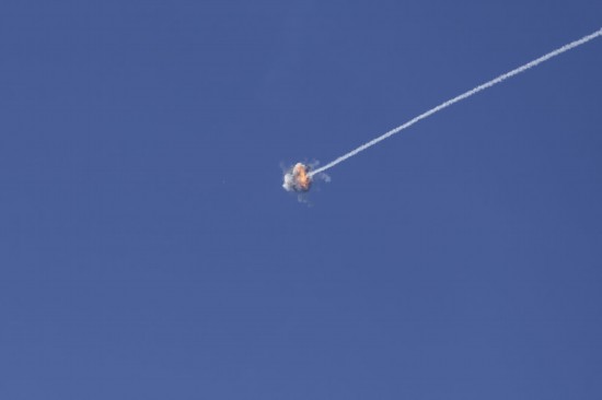 ↑10月7日,在以色列南部城市阿什克隆,以色列“鐵穹”防禦係統導彈成功攔截從(cong) 加沙地帶發射的火箭彈。新華社發(伊蘭(lan) ·阿薩亞(ya) 格攝/基尼圖片社)