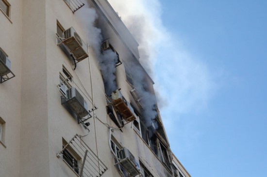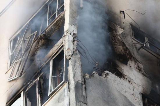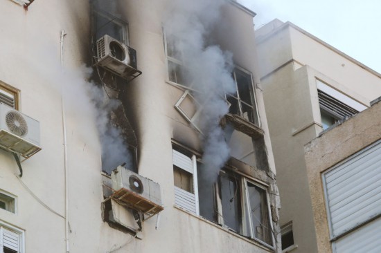 ↑這是10月7日在以色列特拉維夫拍攝的一棟遭火箭彈襲擊的建築。新華社發(吉德翁·馬科維奇攝/基尼圖片社)